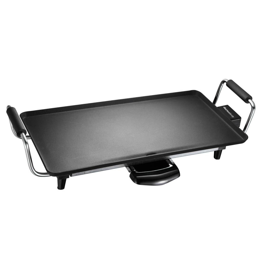 Melchioni FamilyPiastra liscia antiaderente con termostato regolabile, maniglie laterali e piedini antiscivolo che permette di servire in tavola gli alimenti cotti alla piastra grazie alla vaschetta raccogli grasso. Dimensioni piastra: 43x23cm. Alimentazione: 220-240V AC 50-60Hz. Potenza: 2000W.