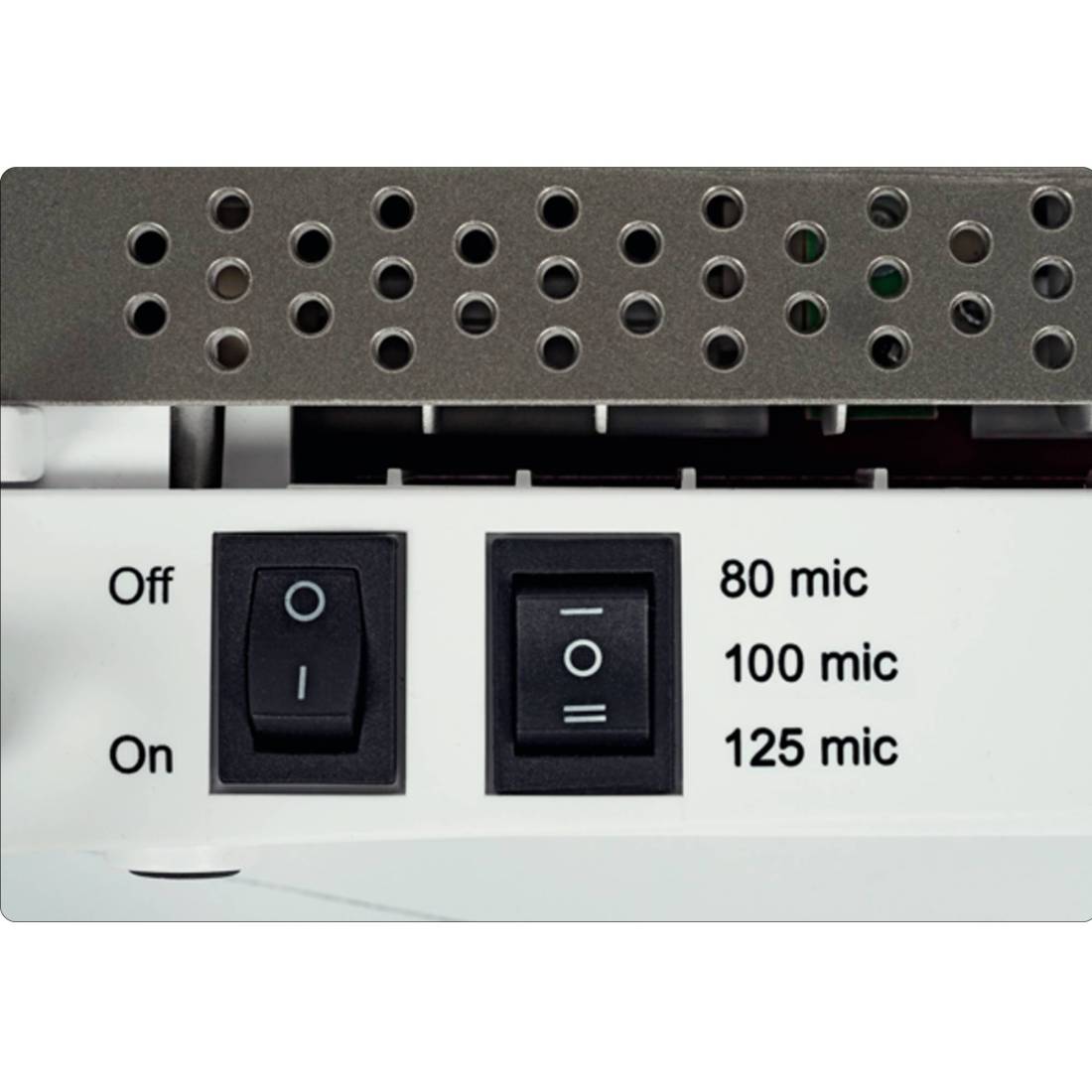 Una plastificatrice affidabile e dal design elegante, sottile e alla moda. progettata per utilizzo professionale. Dotata di 2 rulli riscaldanti plastifica una pouch di 80 micron in 30 secondi. Basso consumo di energia- spegnimento automatico se la macchina non viene utilizzata per 30 minuti. La luce led e il segnale acustico indicano quando la plastificatrice e' pronta per l'uso (tempo riscaldamento 1 min.). Plastifica il f.to A3. Garanzia di 3 anni. Maggiori info http://www.esselte.it.