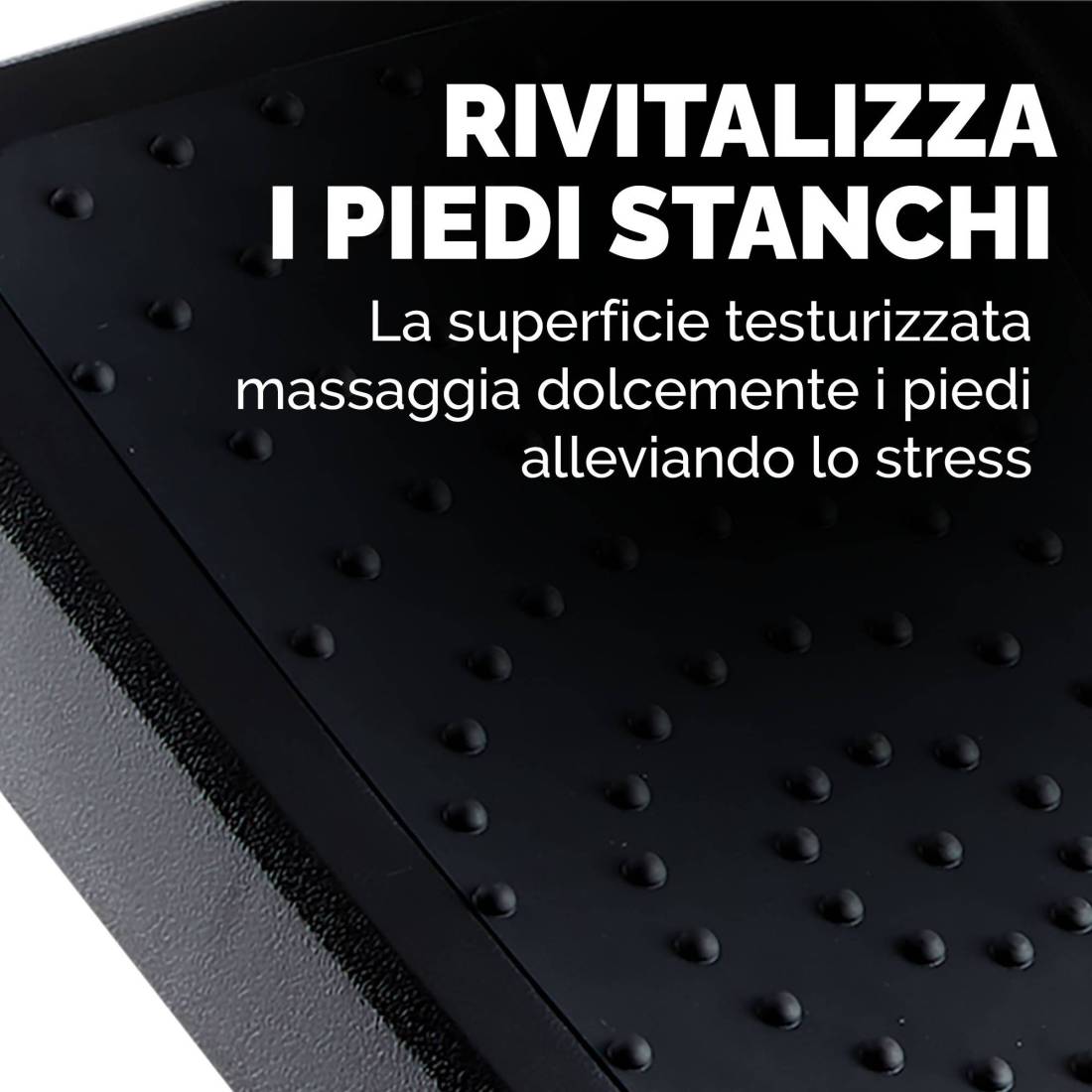 Poggiapiedi Ultimate Professional Series con regolazione dell’altezza a forbice con 3 livelli da 100, 135 e 165mm. La piattaforma basculante, dotata di sfere massaggianti che alleviano lo stress, permette un movimento oscillante che migliora la circolazione. Dimensione piattaforma: 46x35cm.