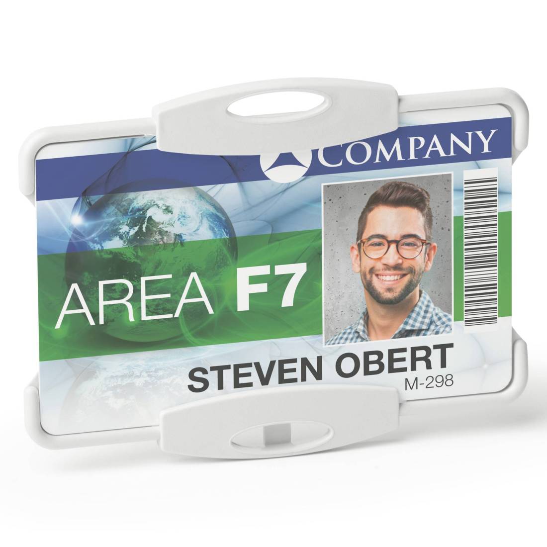 Portabadge ideale per 1 tessera. Realizzato in plastica riciclata certificata Blue Angel. Può essere utilizzato sia in formato orizzontale che verticale. Può essere utilizzato con catenella, cordoncino in tessuto o chiocciola yo-yo . Dimensioni interne: 54 x 87 mm.
