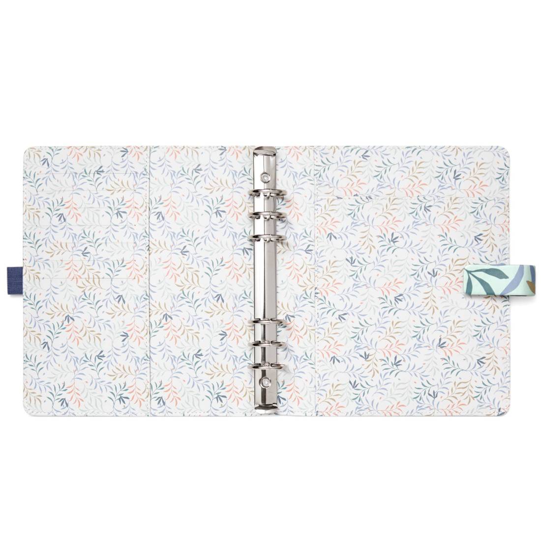FILOFAXOrganiser della nuova collezione Botanical di design accativante ed interni fantasia, ispirato ai colori della natura. Copertina liscia a motivi Botanical, chiusura con cinturino. Dotato di anello portapenna e tasche interne. Contiene agenda settimanale su 2 pagine multilingua. Carta da 80gr, adatta a penne stilografiche.