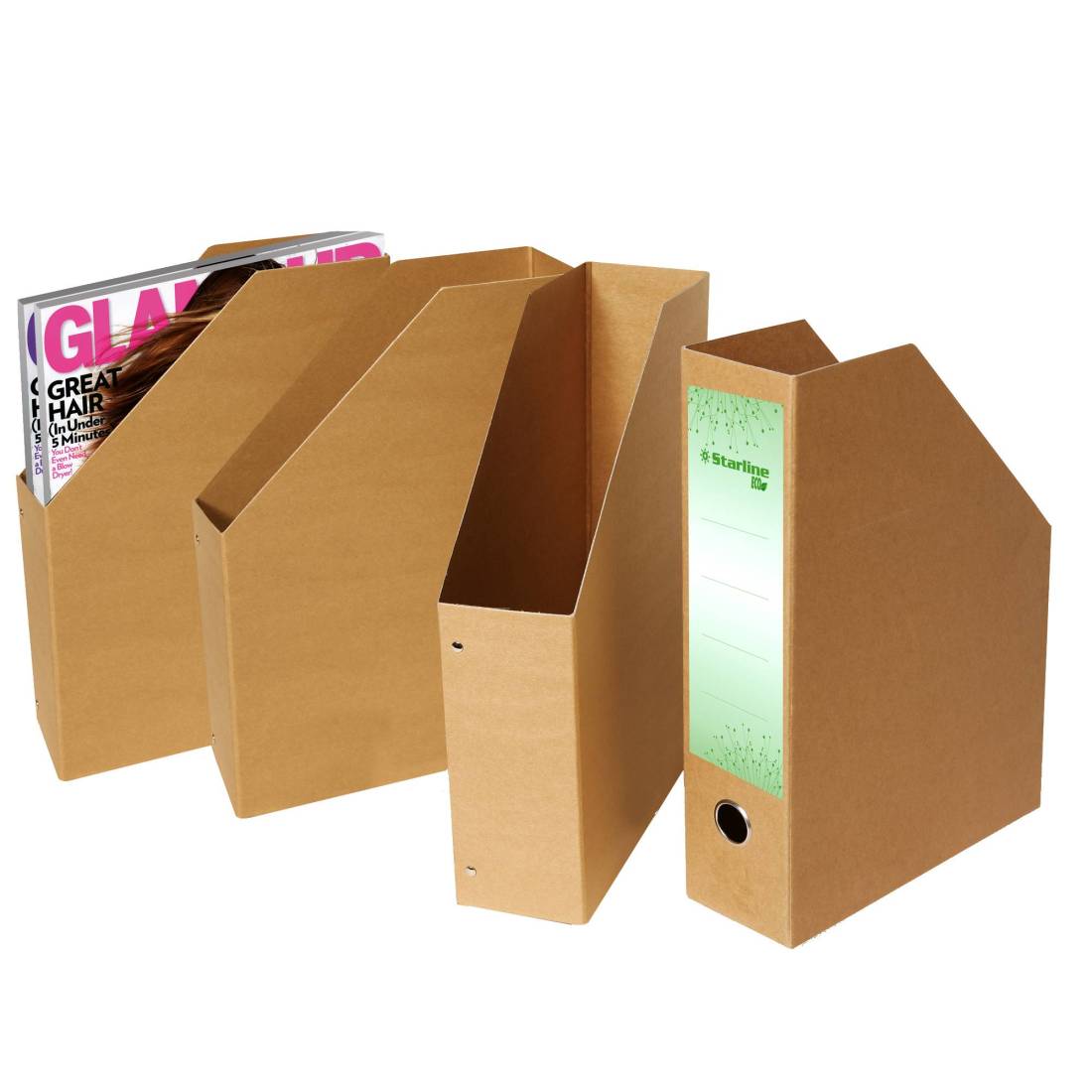 Portariviste Eco Starline realizzati in robusto cartone da 1,1mm color avana certificato FSC. Anello d'estrazione in acciaio nichelato applicato sul dorso. Fondo trattenuto mediante rivetti in acciaio nichelato. Ampia etichetta colorata scrivibile adesiva presente all 'interno del portariviste. Custodia in cartone avana. Dimensioni: H35 x L25cm - dorso 8cm.