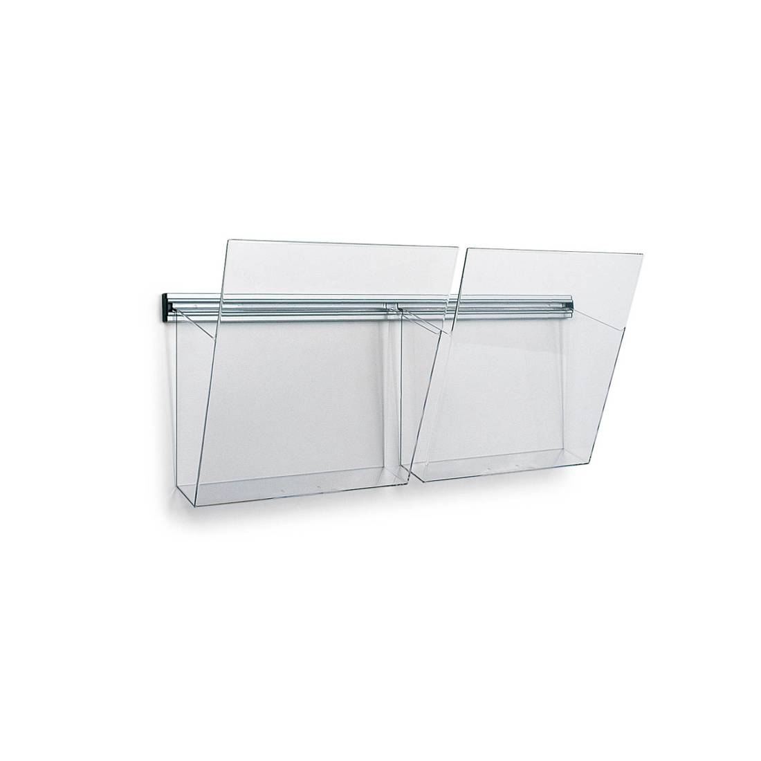 STUDIO TBarra in alluminio con tappini terminali grigi. e tappi di fissaggio. Completo di 2 tasche portadepliant vision A4 in polistirene trasparente neutro. Dimensioni (lxhxp): 50x14x25cm.
