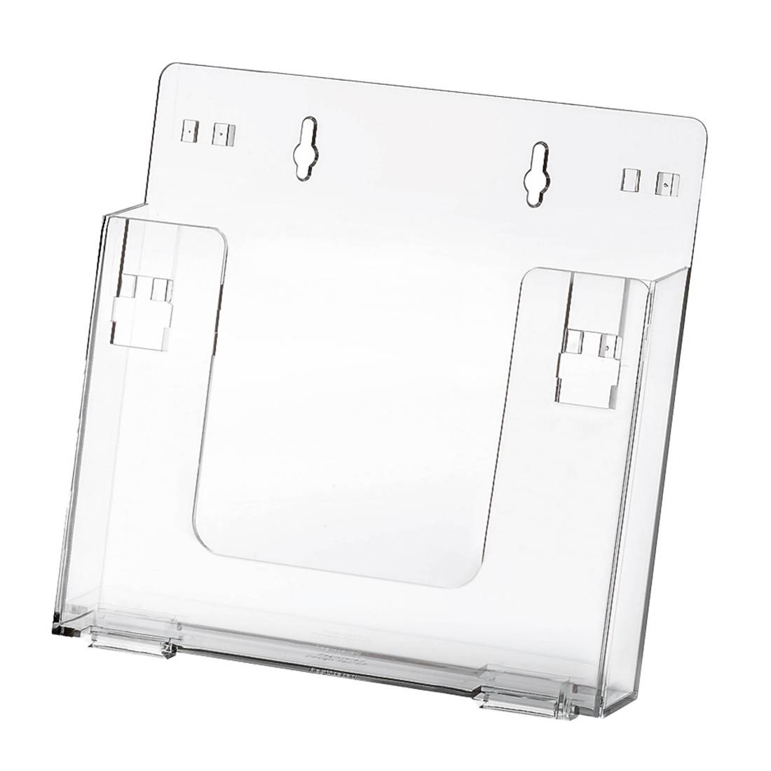 PORTADEPLIANT IN POLISTIRENE TRASPARENTE COMPONIBILI DA PARETE. A 1 TASCA.Formato:Esterno: Altezza x lunghezza x profondità 18,5x16,5x3,5 cmInterno:Altezza x lunghezza x profondità 17,5x16x2,8 cm