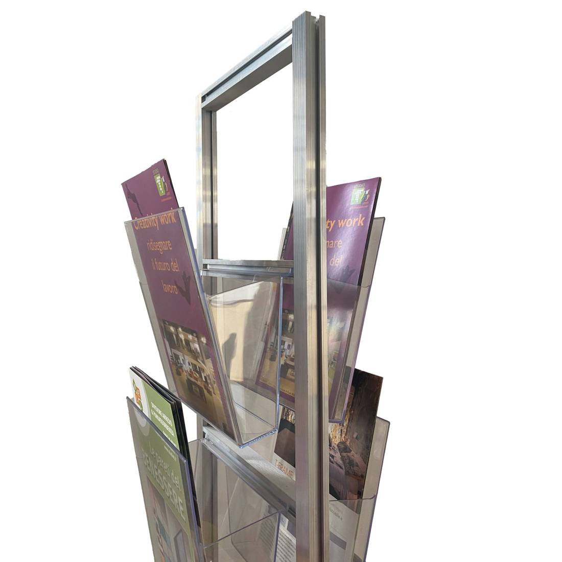 STUDIO TEspositore porta depliant. Montanti in alluminio e tasca Vision molto contenitiva formato A4 comodo.