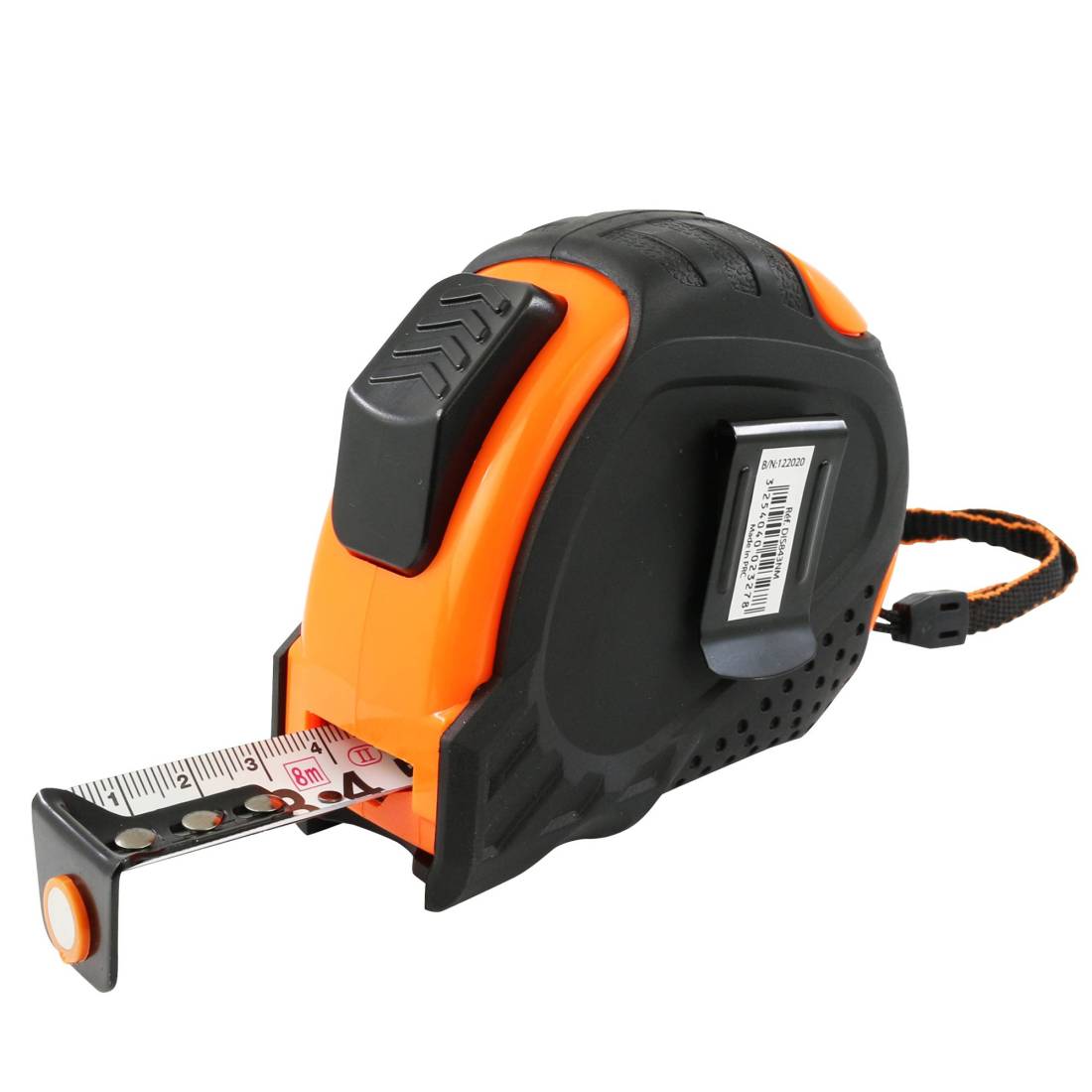 Metro autobloccante con stampa semplice e rivestimento opaco antiriflesso. Dotato di attacco magnetico e cinturino in tessuto.