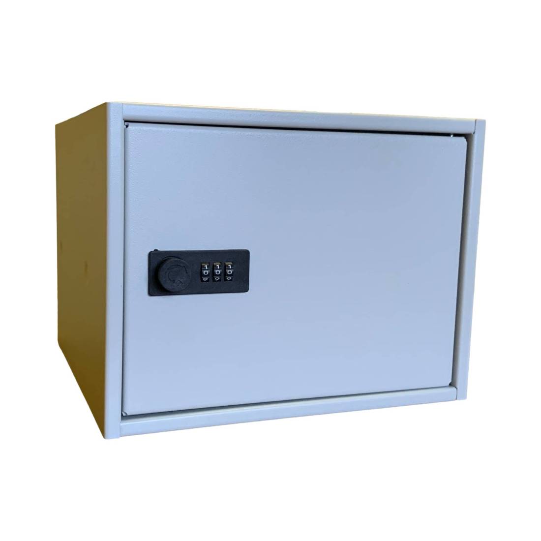 vernice: polvere epoxy poliestere (formulata con pigmento esente da cromo e piombo). Serratura a combinazione meccanica a 3 ruote. Provvisto di fori sul retro e kit di tasselli/viti per fissaggio al muro.Dimensioni esterne: 250x190x235mm; Dimensioni interne:240x180x210mm.