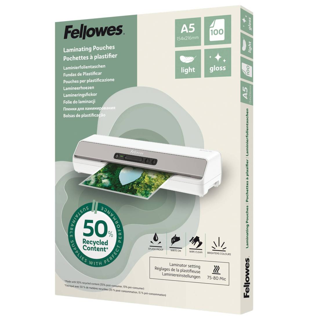Le nuove pouches riciclate sono realizzate con il 50% di contenuto riciclato (35% minimo post-consumo, 15% pre-consumo). Forniscono una plastificazione perfetta con un impatto ambientale ridotto. Confezione da 100 buste di pouches a finitura lucida. Disponibili nel formato A3/A4/A5/A6. Uso leggero. Per l'uso con l'impostazione della plastificatrice a 75/80 micron.