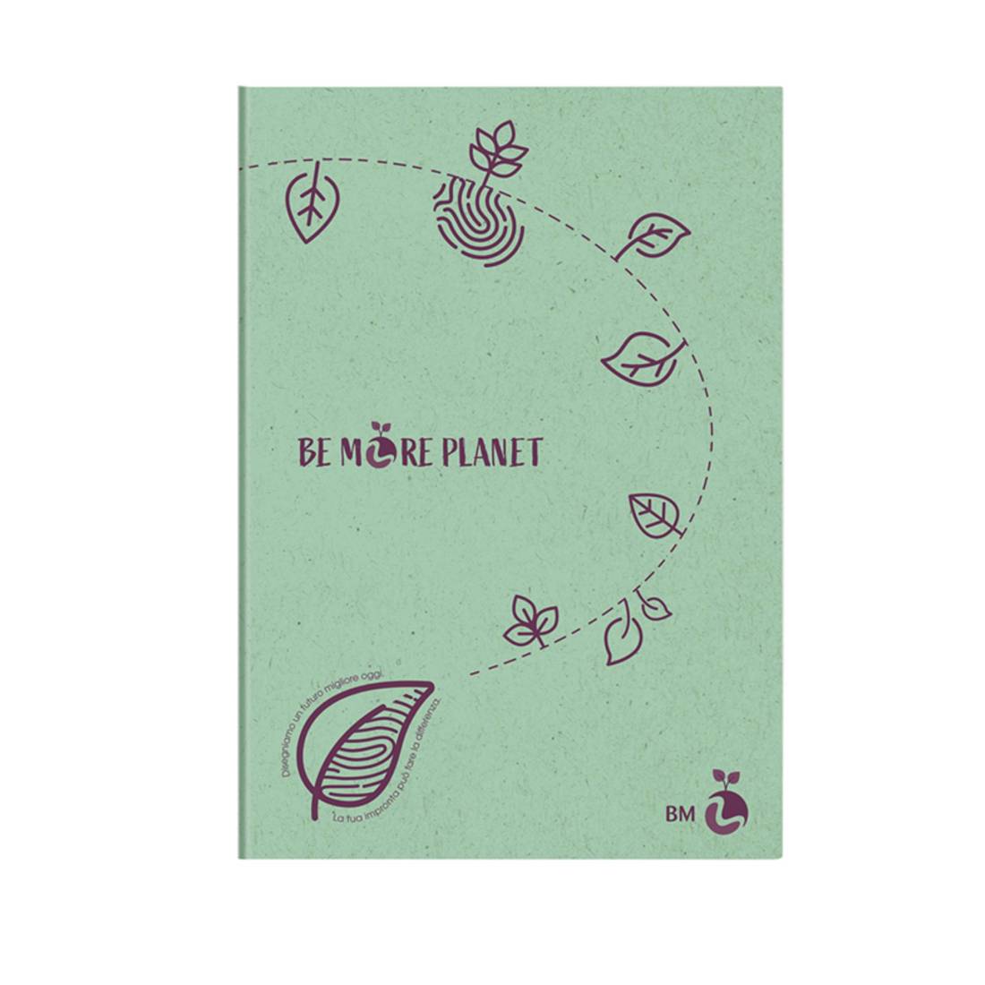 Nuovo maxiquaderno Be More Planet realizzato con materie prime ecosostenibili FSC. Assortimento con 9 colorazioni ispirate alle sfumature della natura. 100% plastic free. Rilegatura con punto metallico.