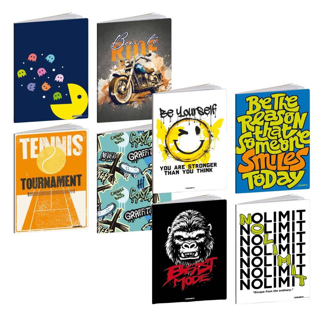 Maxiquaderni in edizione limitata. Copertina in cartoncino con verniciatura UV da 200gr. Carta da 80 gr, 20+1 fogli con risquardo. Rilegatura con punto metallico.