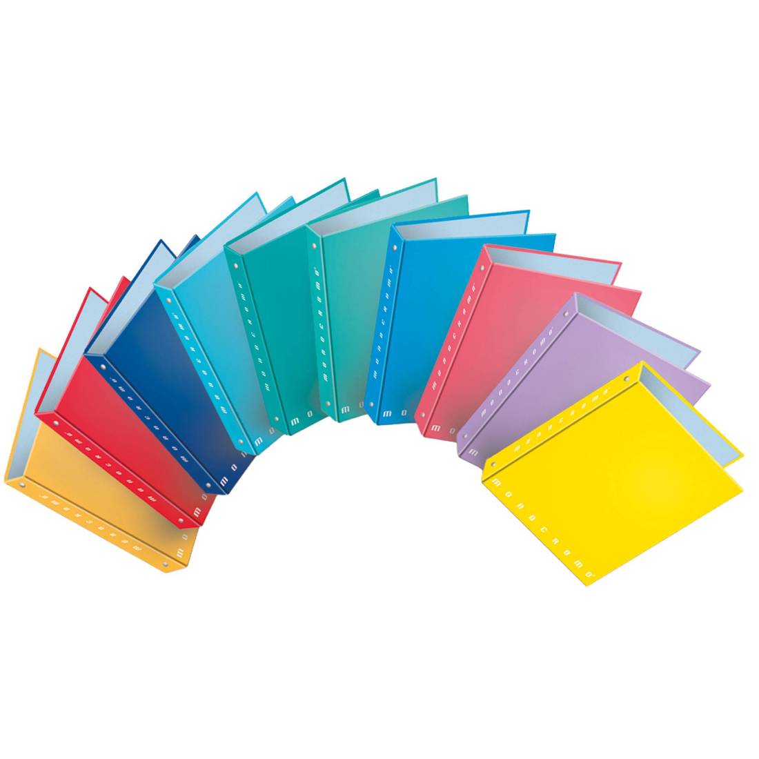 Raccoglitore in cartone ricoperto di carta lucida. Meccanismo a 4 anelli da 25mm. Dorso 3cm. Formato utile 15x21cm (A5)cm. Confezione da 5 pezzi in colori assortiti.