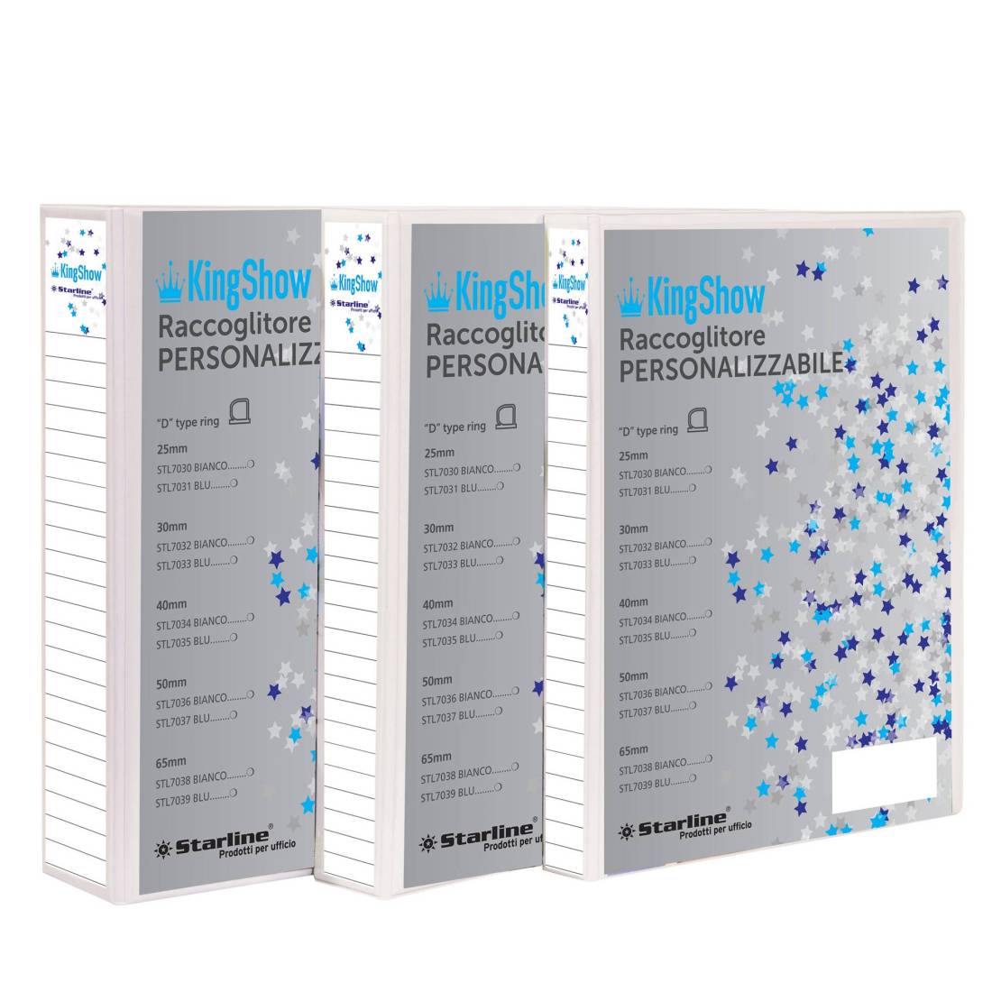 Raccoglitore personalizzabile KingShow - 4 anelli a D 65 mm - dorso 8 cm - 22x30 cm - bianco - Starline