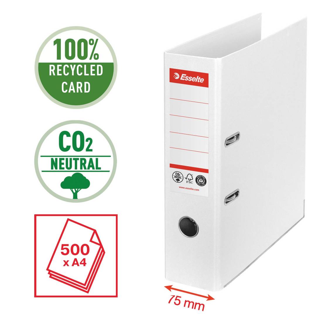 Raccoglitore con meccanismo a leva ecologico realizzato con carta riciclata al 100% con certificazioni ambientali Climate Neutral, FSC e Blue Angel. L'esclusivo meccanismo No.1 garantisce prestazioni superiori. 75 mm di larghezza e adatto per formato A4. Questo raccoglitore sostenibile si integra perfettamente con altri prodotti ecologici di Esselte come le buste a perforazione e a "L" in plastica riciclata. Colori moderni e freschi della gamma Esselte Vivida che si adattano perfettamente a casa e in ufficio. Il raccoglitore con meccanismo a leva a zero emissioni CO2 di Esselte migliora l'ambiente del tuo ufficio e l'ambiente del nostro pianeta.