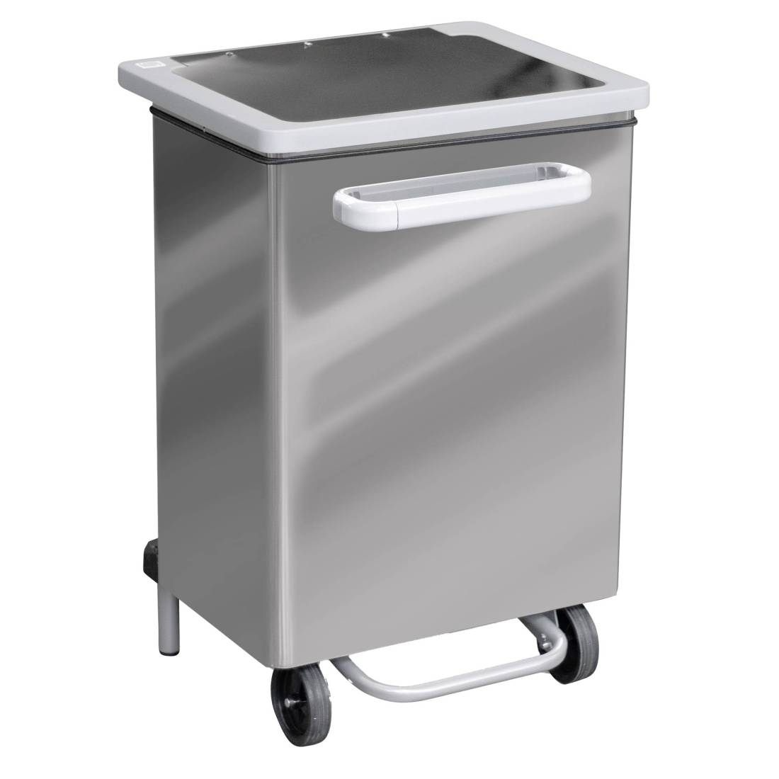 STILCASAContenitore a pedale per raccolta rifiuti totalmente in acciaio con svuotamento frontale. Fornito montato. Dimensione: 47x37xH70cm - 70L. Haccp.