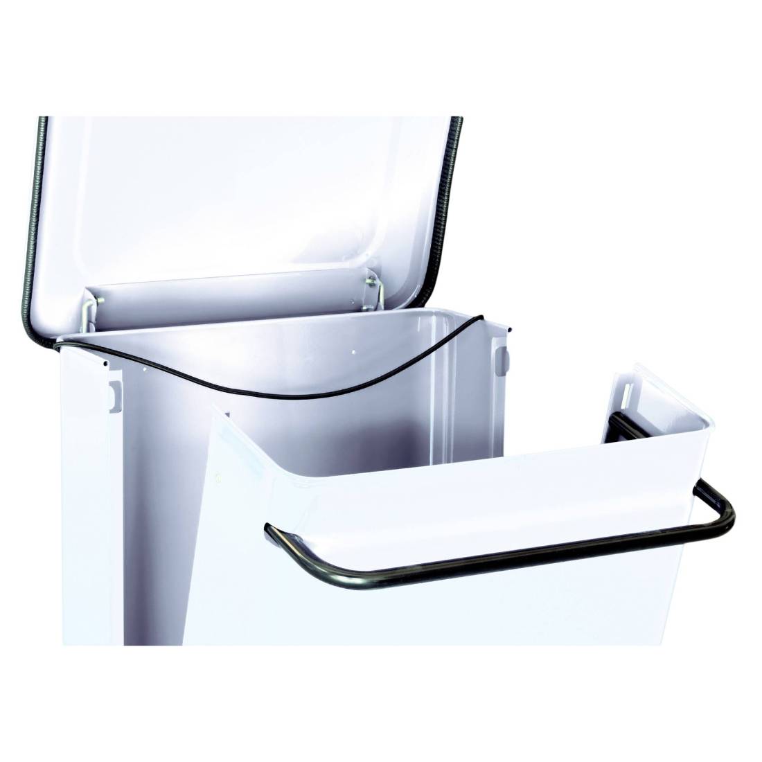 Contenitori mobili a pedale con struttura e coperchio in metallo verniciato bianco con polvere epossidica. Frontale asportabile per facilitare il ricambio del sacco. Ampio pedale per utilizzo conforme a HACCP. Ruote in gomma Ø 95mm. L48 x P42 x H96,5cm. Si consiglia di pulire la superficie con un panno morbido, imbevuto d’acqua o con un prodotto specifico non aggressivo. Non utilizzare detergenti contenenti acetone, metiletilchetone, percloroetano, toluene, tricloroetano, xilene, idrato d’ammonio, idrato di sodio.