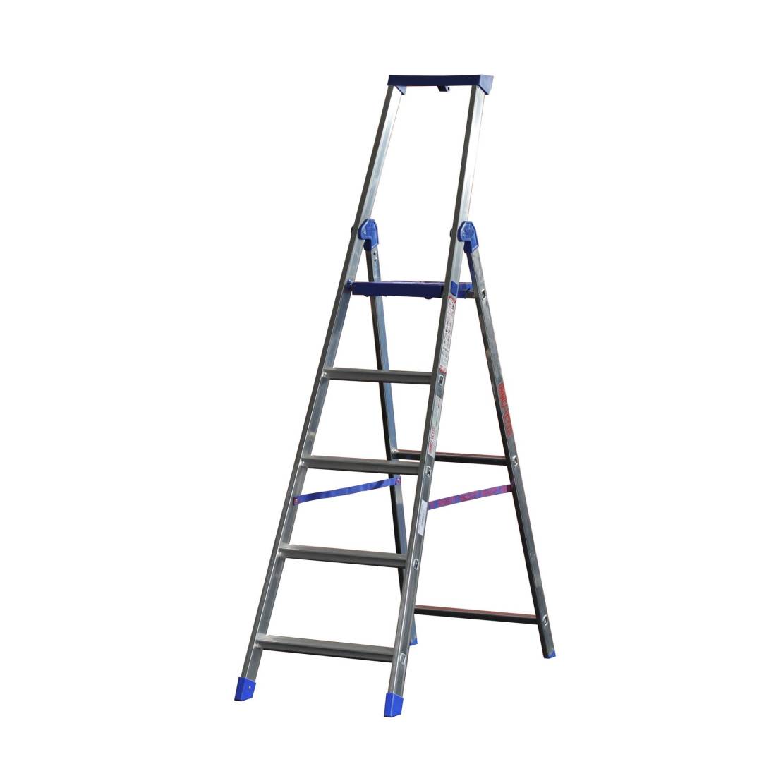 Scale con gradino espanso e ribordato che permette un utilizzo intensivo per il professionista e per chi vuole lavorare in perfetta sicurezza. Parapetto da 60cm con vaschetta portaoggetti e gradino antisdruciolo da 80mm. Piattaforma automatica 270x290mm. Altezza piattaforma 2,00m. UNI EN 131. D.Lgs 81/2008 art.113. D.Lgs 206/2005 art.2 consumatori. Portata massima 150 KG.