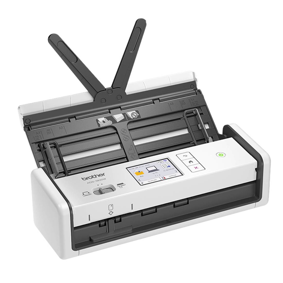 Scanner desktop compatto con duplex (DUAL CIS) e wireless. LCD Touchscreen da 7.1 com. 30ppm/60ipm b/n e colore. ADF da 20 fogli. Scansione di tessere.