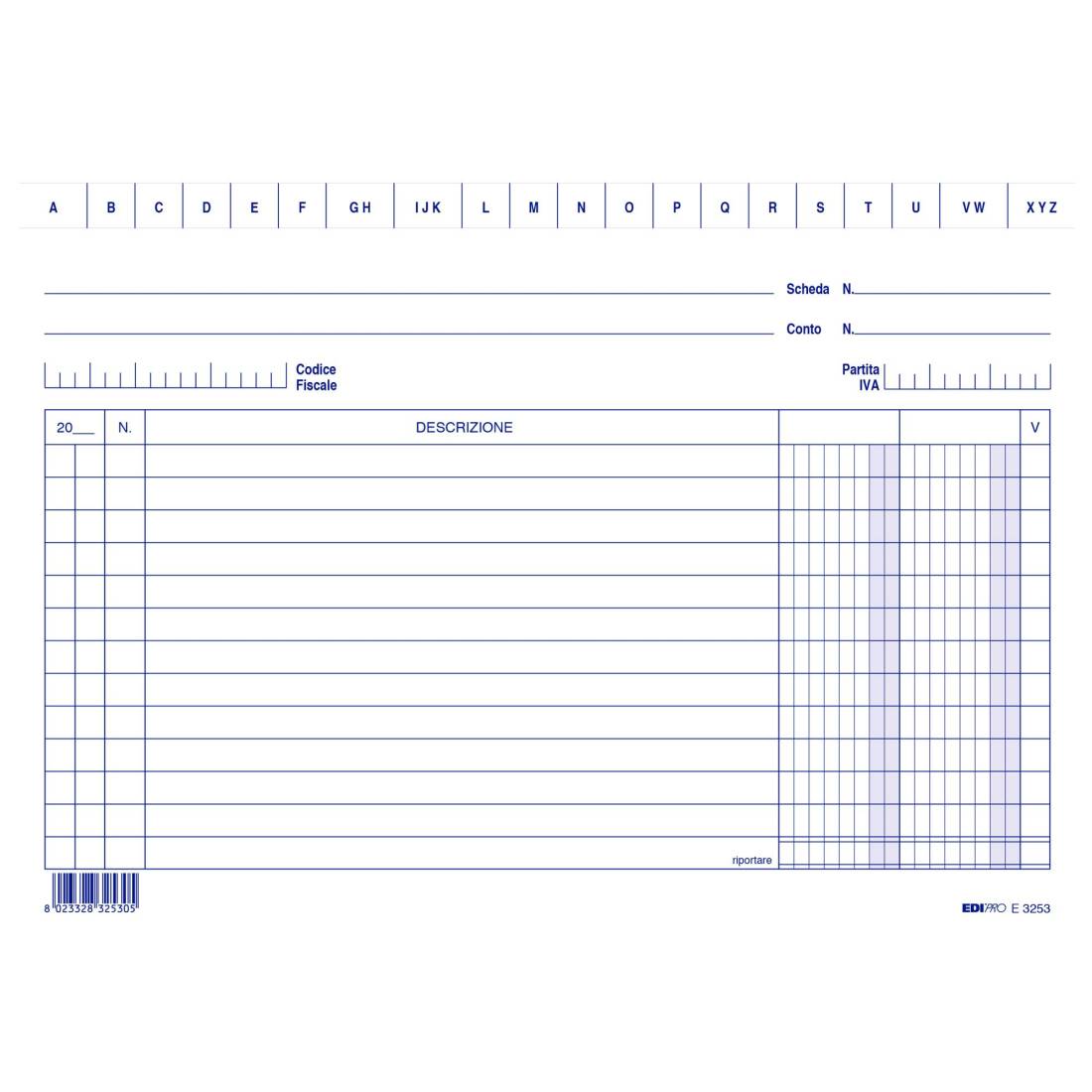 100 schede in cartoncino da 170gr. Formato 15 x 21cm orizzontale. 2 colonne.