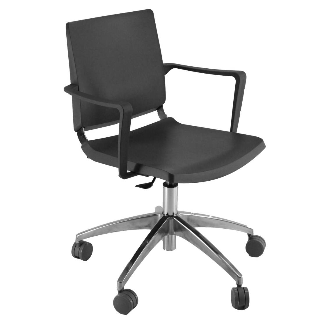 UnisitPoltroncina girevole con braccioli inclusi - elevazione a gas- base allumino lucido - 100% polipropilene. Alt. tot: 77-91cm; Prof.tot: 62cm; Alt.schienale: 39cm; Largh.schienale: 39cm; Largh. sedile: 45cm; Prof.sedile: 45cm; Alt.sedile: 44-67cm.
