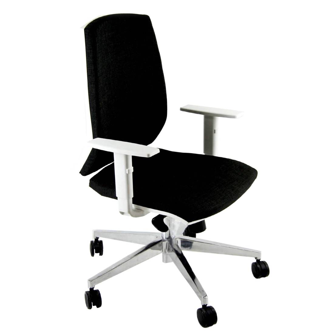 Poltrona semidirezionale girevole con elevazione a gas meccanismo synchro con 4 blocchi anti shock - meccanismo a contatto permanente -schienale regolabile up-down - supporto lombare regolabile. Rivestimento seduta in tessuto "PLUS - Ignifugo standard" in fibra modacrilica e reazione al fuoco classe 1. Completa di braccioli regolabili. Alt.tot.: 102-113cm; Prof.tot.: 68cm; Alt.schienale: 52cm; Larg.schienale: 45cm; Larg.seduta: 47cm; Prof.Sedile: 47cm; Alt. sedile: 44-55cm.