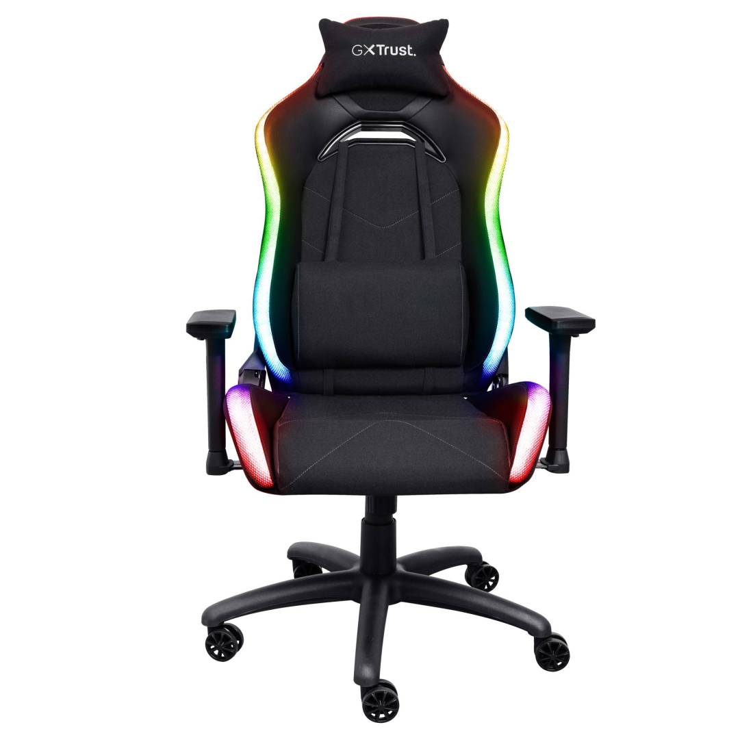 Personalizza la tua configurazione con questa comoda sedia gaming con illuminazione dei bordi RGB - 350 modalità di illuminazione inclusi colori solidi, respirazione e onda arcobaleno RGB, completamente regolabili tramite telecomando - Altezza regolabile, schienale, braccioli 3D e sedile inclinabile con meccanismo di bloccaggio per una postazione di gaming ideale - Sedile in schiuma sagomata e schienale in schiuma ad alta densità per un'esperienza di gioco comoda e piacevole - Tessuto traspirante con resistente pelle sintetica in poliuretano ai lati per una sensazione di freschezza - Design resistente: struttura realizzata con legno sostenibile certificato FSC® - Robusta struttura con meccanismo di sollevamento a gas di classe 4 testato fino a 150 kg per un supporto ottimale - Cuscino lombare e per il collo regolabile e rimovibile per alleviare la tensione durante il gioco - Tasca laterale aggiuntiva per riporre il telecomando e il powerbank incluso.