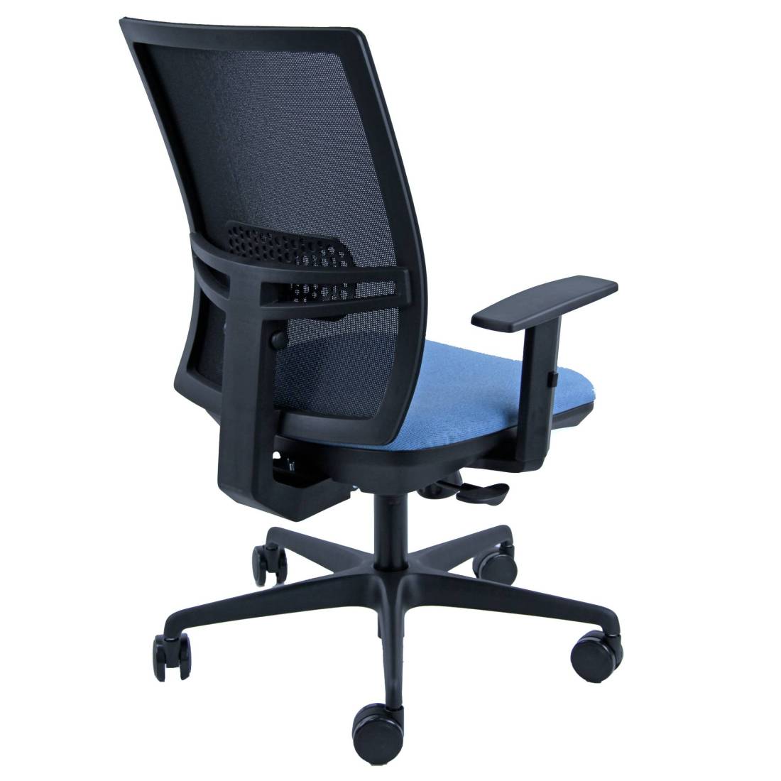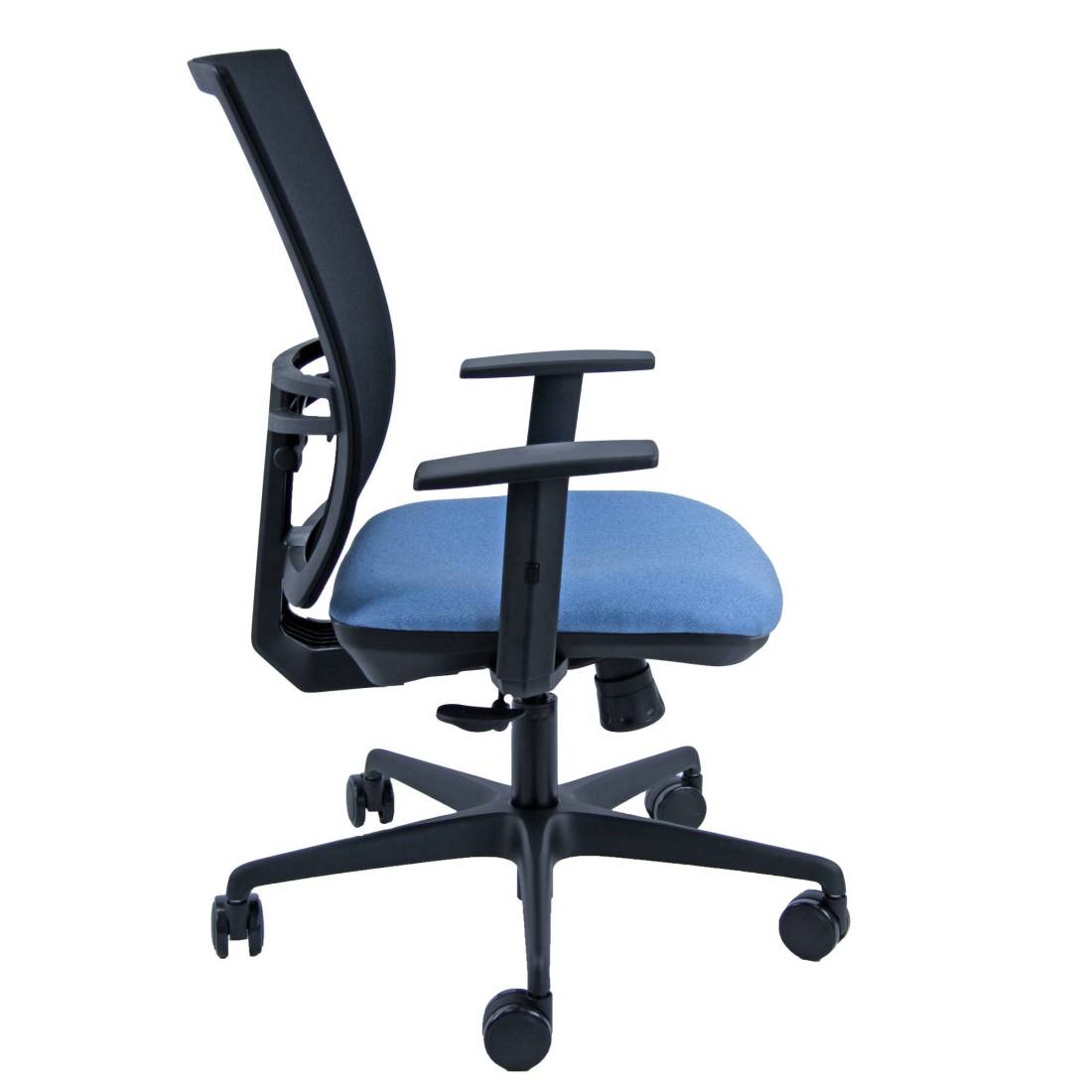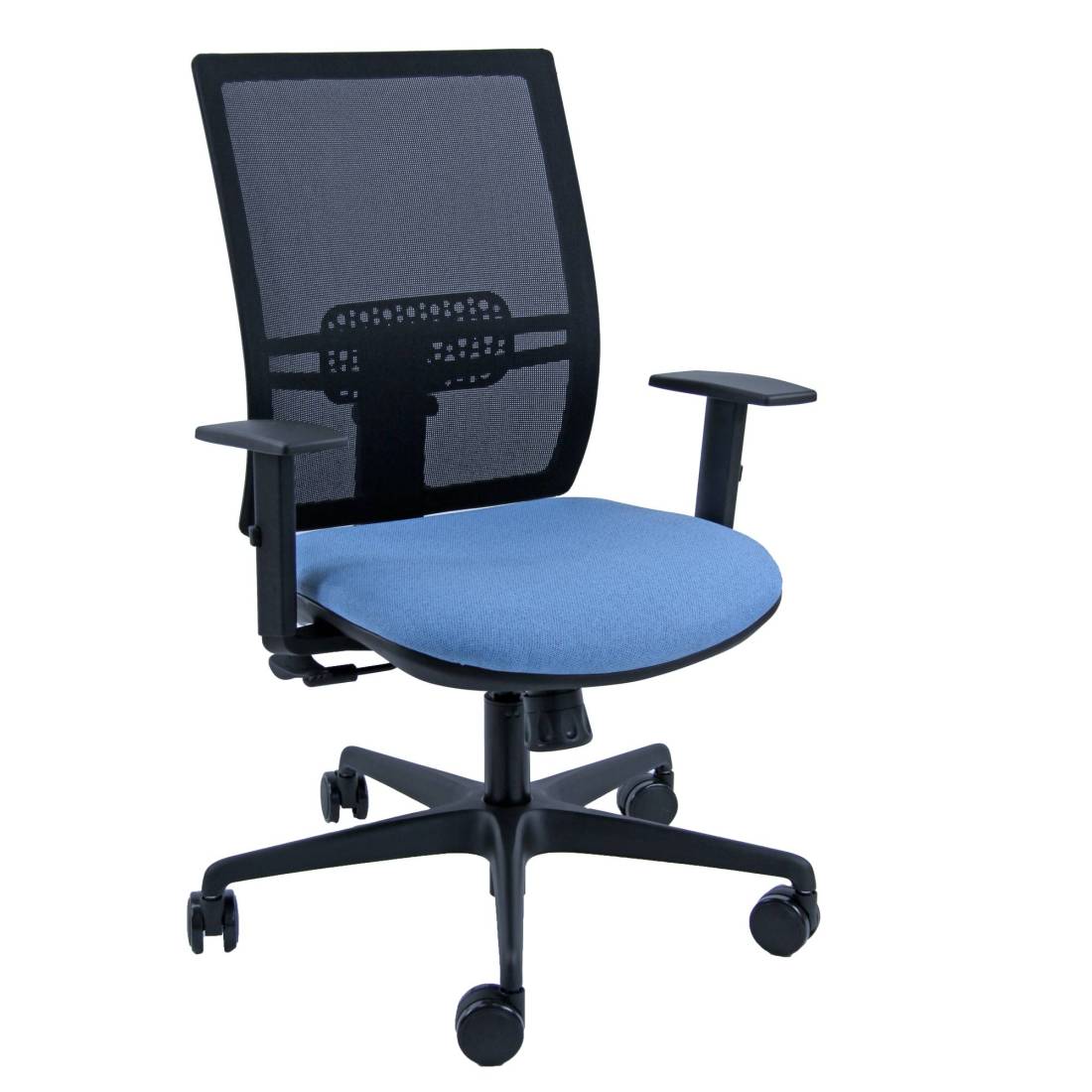 Sedia girevole su ruote supporto lombare regolabile operativa con schienale in rete elevazione a gas - supporto lombare regolabile contatto permanente - meccanismo synchro tra sedile e schienale, a contatto permanente movimento di ritorno dello schienale con antishock. Rivestimento in tessuto "PLUS - Bondai" 100% poliestere no flame e certificazioni di infiammabilità 1.IM UNI 9175. Completa di braccioli regolabili. Alt.tot.: 98-110cm; Prof.tot.: 70cm; Alt.schienale: 57cm; Larg.schienale: 45cm; Larg.seduta: 47cm; Prof.Sedile: 45cm; Alt. sedile: 42-55cm.