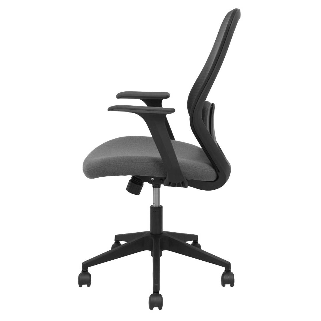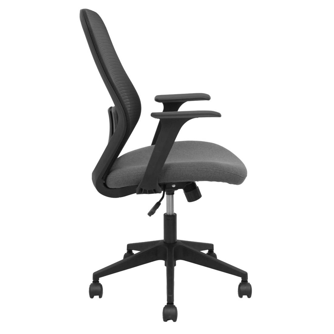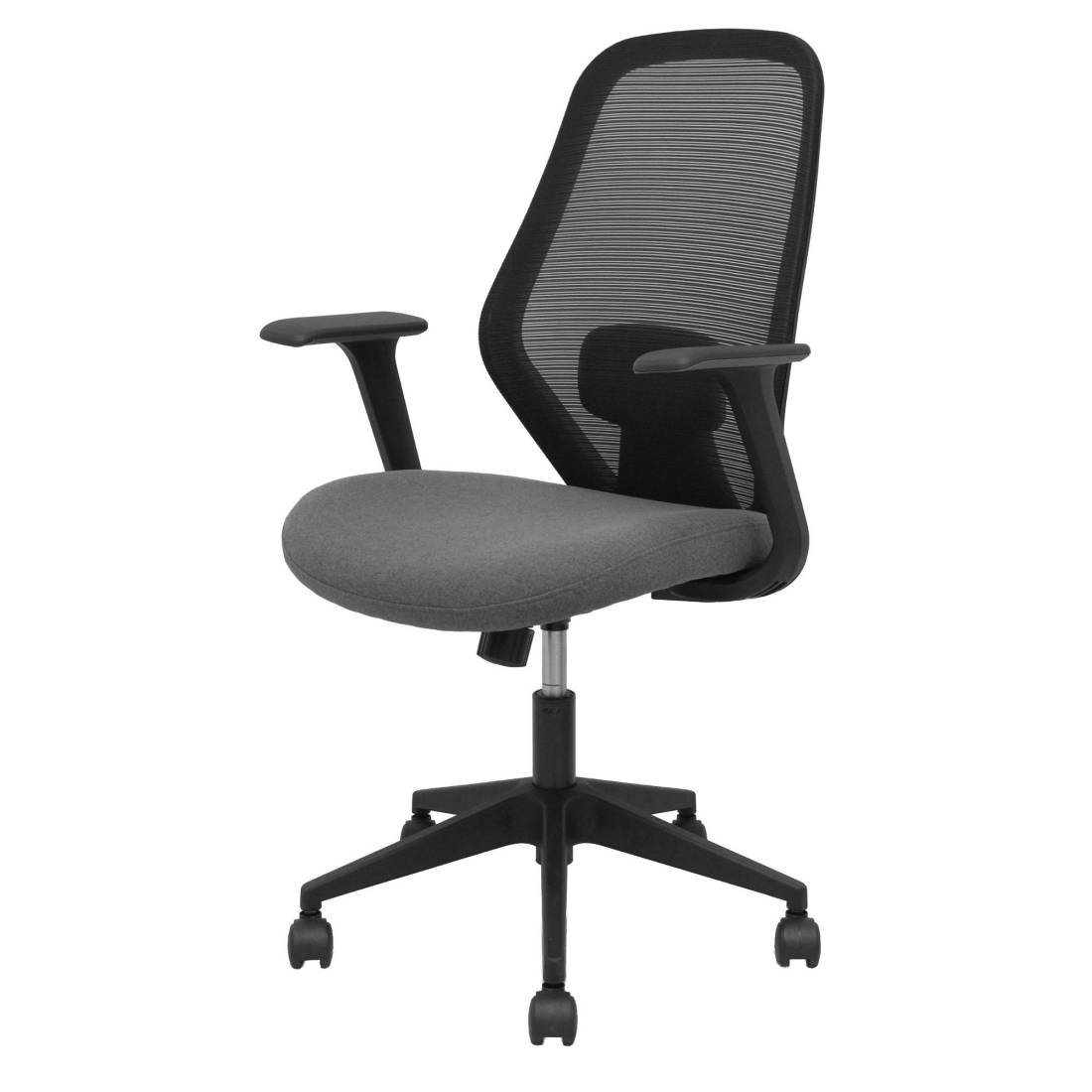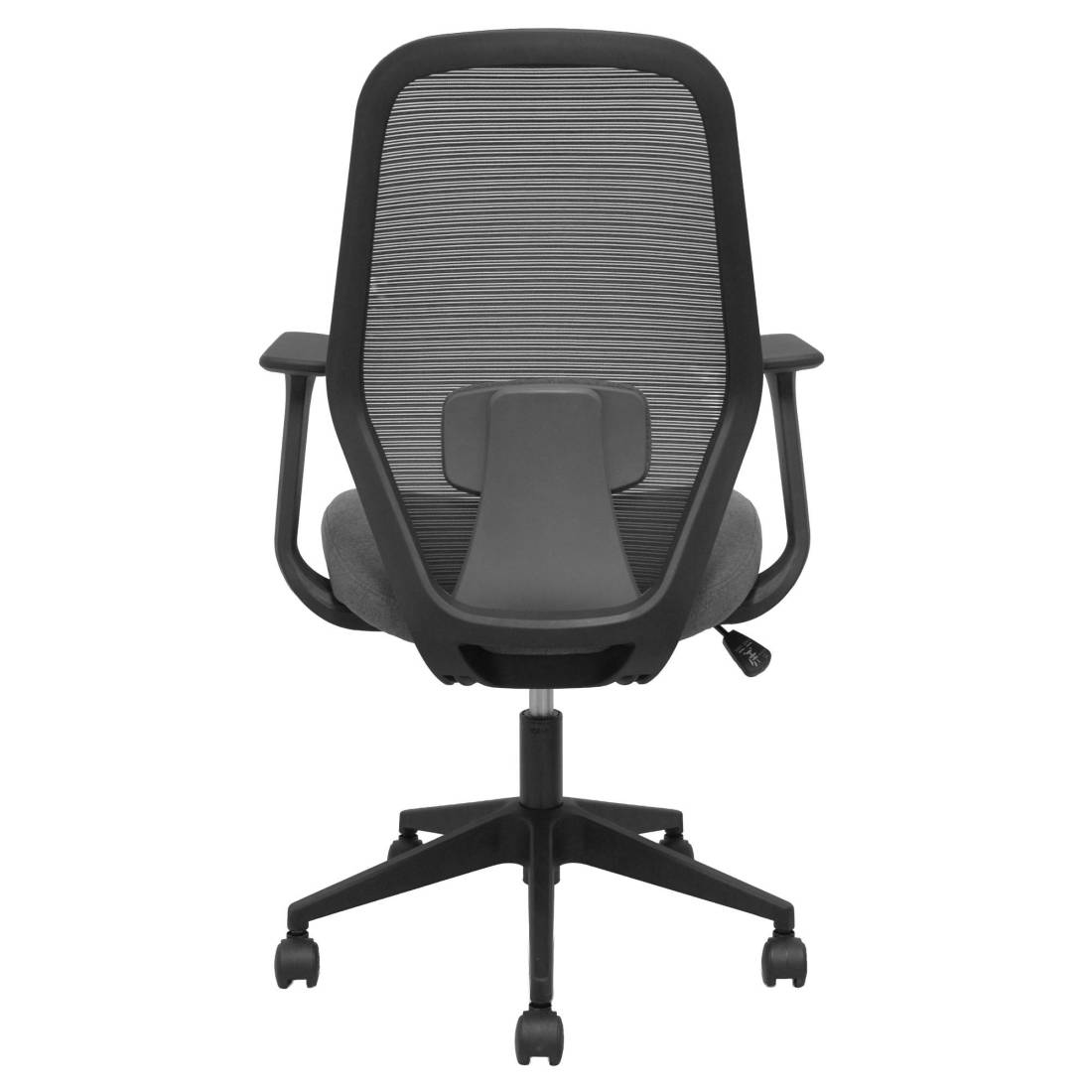 Seduta operativa girevole con palliera in rete e sedile imbottito. Meccanismo basculante, base piramidale e ruote in nylon. Braccioli fissi e supporto lombare. Supporta peso massimo di 120 kg. Altezza: 100-107 cm. Altezza sedile: 47-56 cm. Prof. Sedile: 49,5cm.