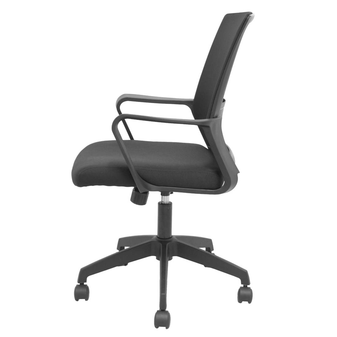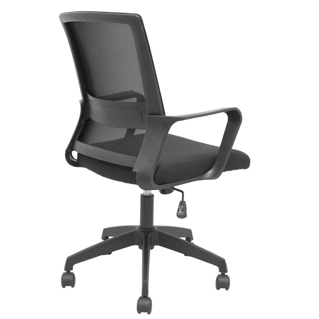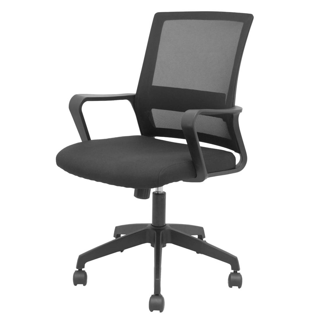 Seduta operativa girevole con spalliera in rete e sedile imbottito, meccanismo basculante e ruote in nylon. Braccioli fissi e supporto lombare. Supporta peso massimo di 120 kg. Altezza: 93-100 cm. Altezza sedile: 48-54 cm. Prof. Sedile: 50cm.