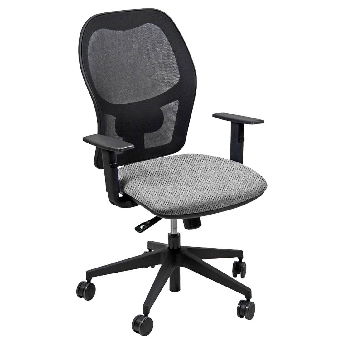 UnisitSeduta operativa girevole con elevazione a gas, meccanismo syncro, 4 blocchi anti shock e meccanismo a contatto permanente. Schienale con supporto lombare regolabile. Completa di braccioli regolabili. Rivestimento in tessuto "ECO-Eco" 100% polipropilene. Alt.tot: 102-113cm; Prof.tot: 68cm; Alt.schienale: 60cm; Largh.schienale: 48cm; Largh.sedile: 48cm; Prof.sedile: 46cm; Alt.sedile: 42-54cm.