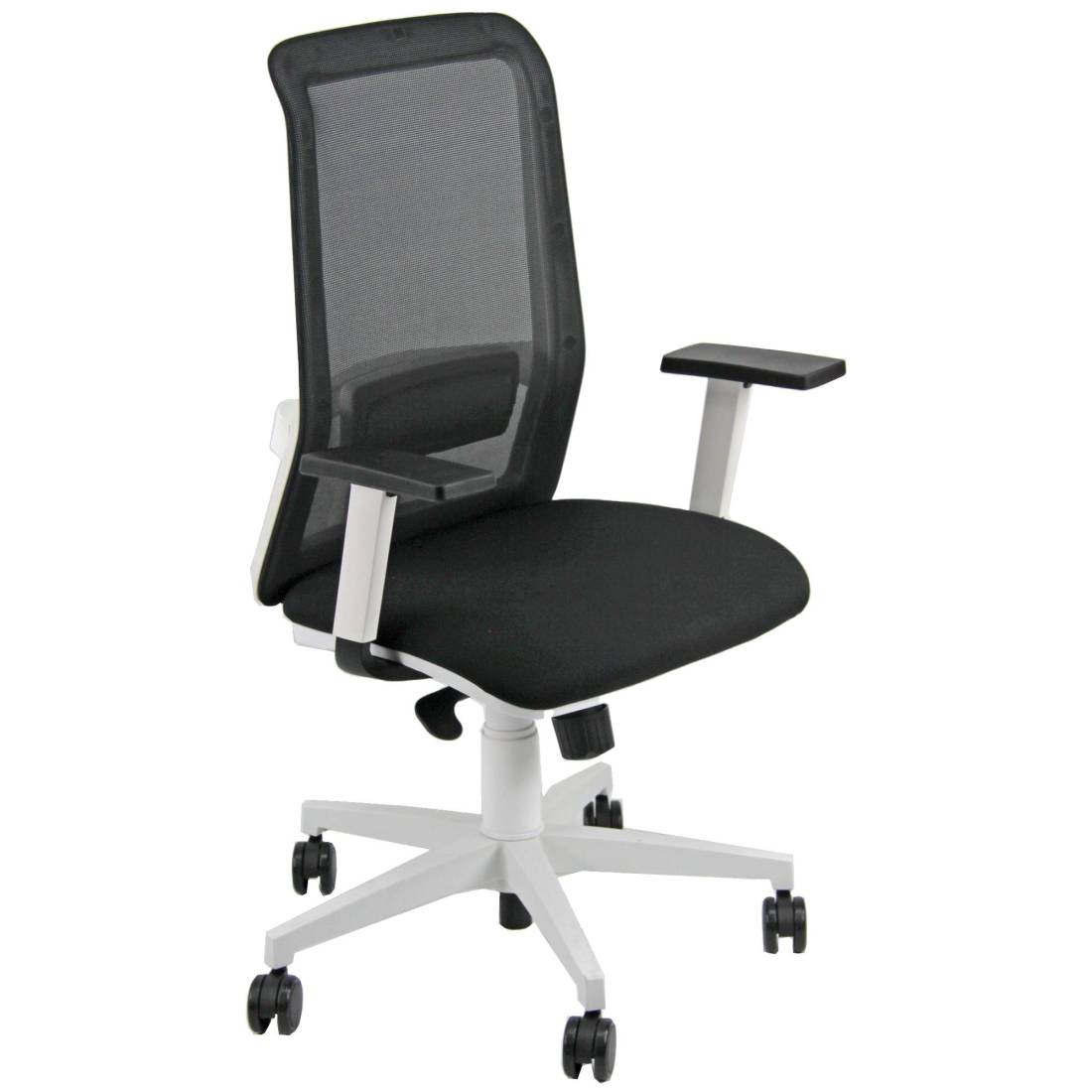 Sedia girevole su ruote operativa con schienale in rete elevazione a gas - supporto lombare regolabile - meccanismo con variatore di spinta synchro tra sedile e schienale, a contatto permanente con ritorno dello schienale controllato da 4 blocchi antishock - sedile dotato di traslatore (avanti e indietro). Rivestimento seduta in tessuto "PLUS - Ignifugo standard" in fibra modacrilica e reazione al fuoco classe 1. Completa di braccioli regolabili. Alt.tot.: 102-113cm; Prof.tot.: 70cm; Alt.schienale: 60cm; Larg.schienale: 45cm; Larg.seduta: 51cm; Prof.Sedile: 49-55cm; Alt. sedile: 42-54cm.