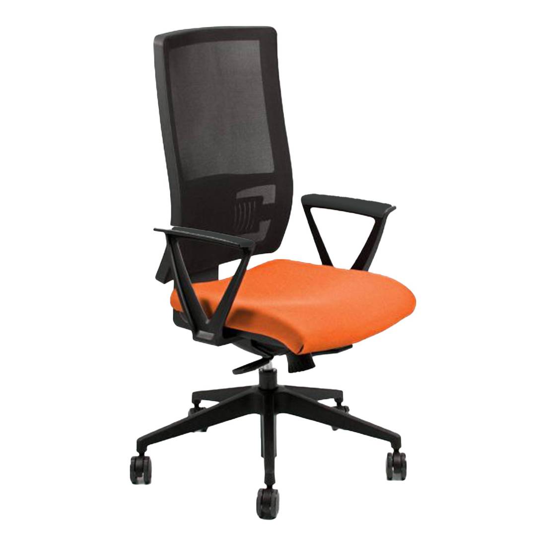 UnisitPoltrona con schienale alto in rete nera con supporto lombare. Rivestimento in tessuto Eco con trattamento ignifugo, meccanismo sincronizzato con contatto permanente, elevazione a gas e braccioli fissi in polipropilene inclusi.