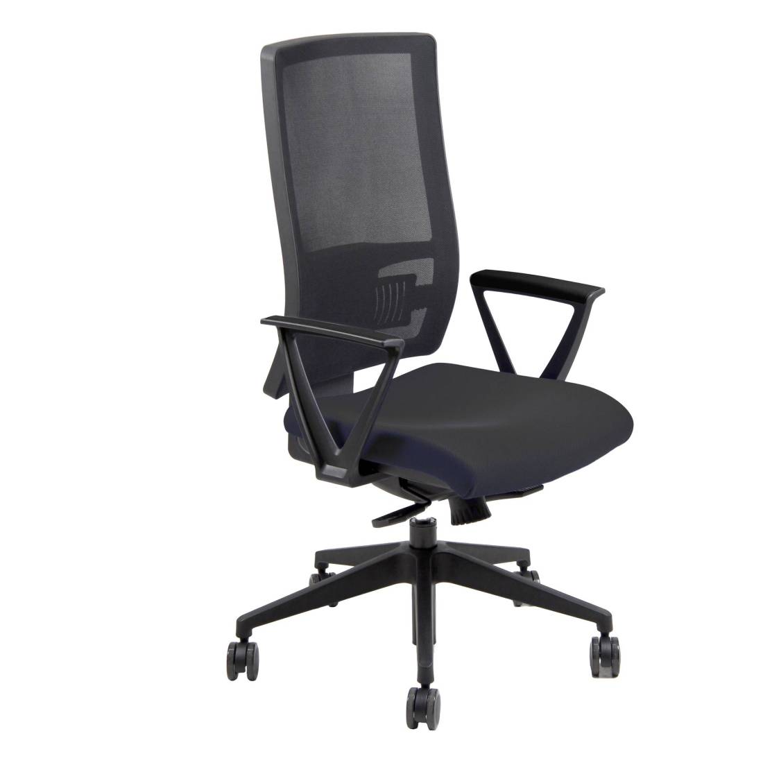 UnisitPoltrona con schienale alto in rete nera con supporto lombare. Rivestimento in tessuto Eco con trattamento ignifugo, meccanismo sincronizzato con contatto permanente, elevazione a gas e braccioli in polipropilene.