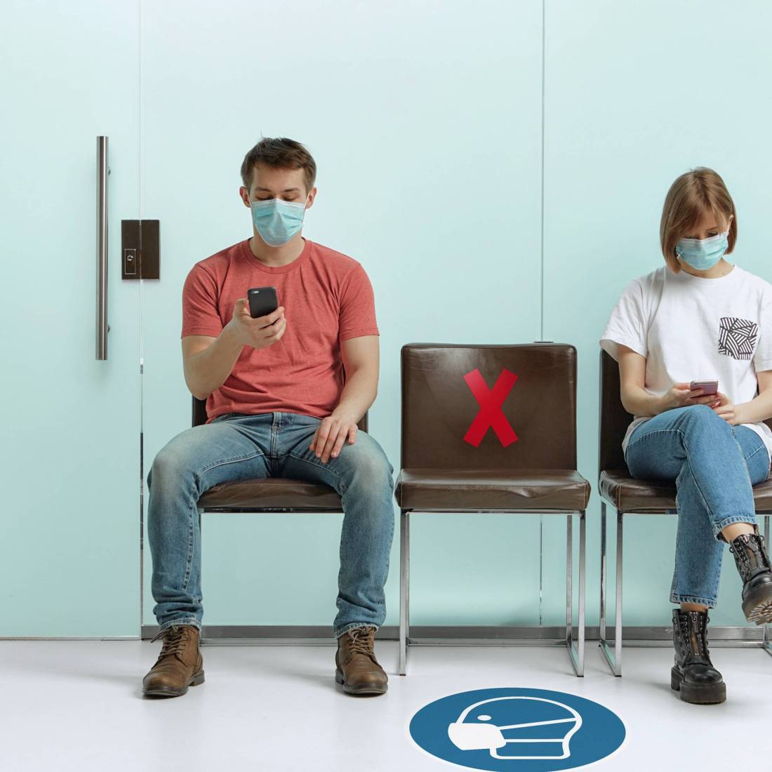 Simbolo adesivo rimovibile adatto a superfici in tessuto o in plastica in aree interne. Ideale per contrassegnare sedie e tavoli da non utilizzare, in base alle normative vigenti sulla distanza di sicurezza. Colore RAL 1001 rosso. Dimensioni: 13,5x0,02x19,3cm