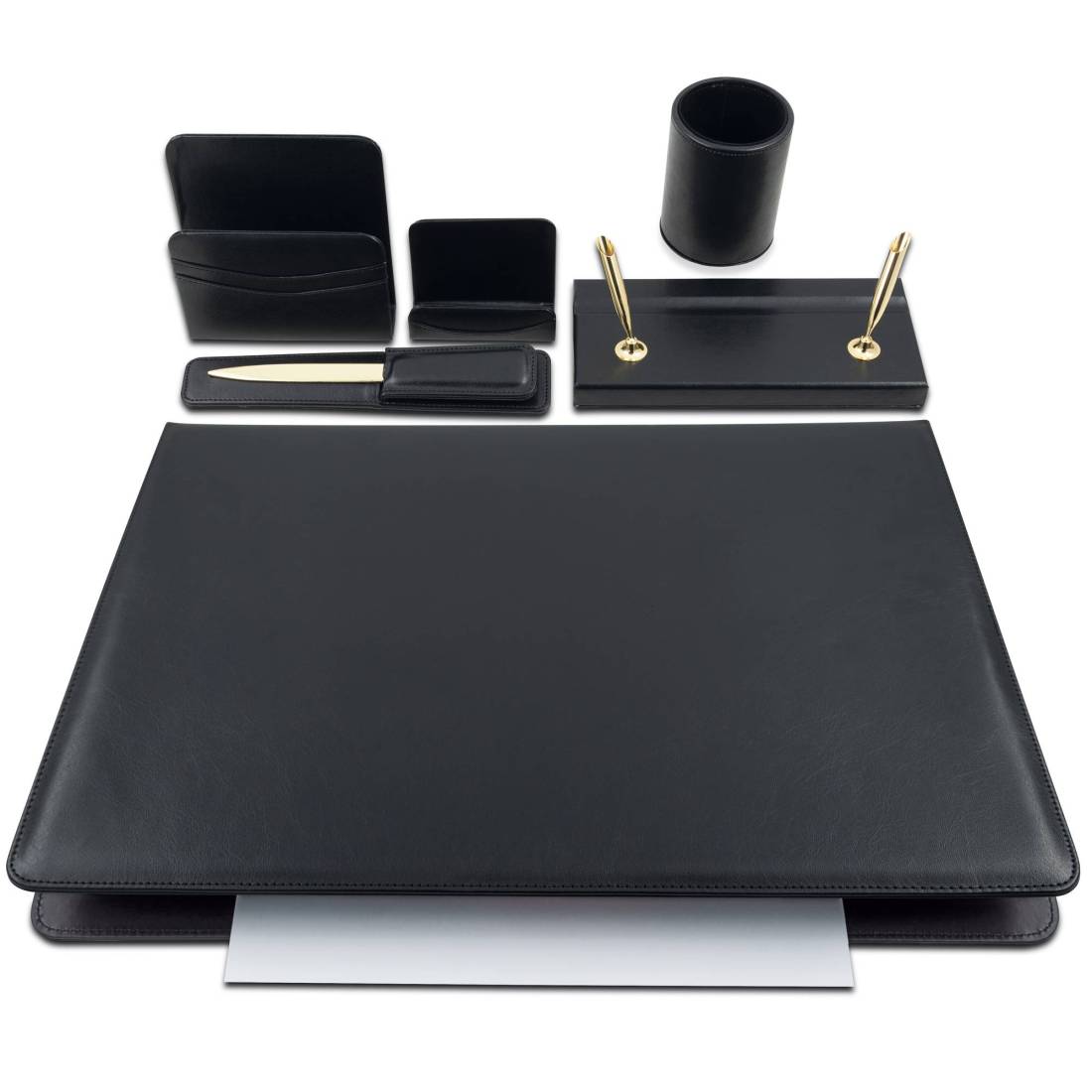 City TimeSet scrittoio in similpelle morbido composto da 6 accessori: sparticarte, bicchiere portapenne, portabiglietti da vista, apribusta con custodia, base portastilofori e sottomano doppio 50x35cm.