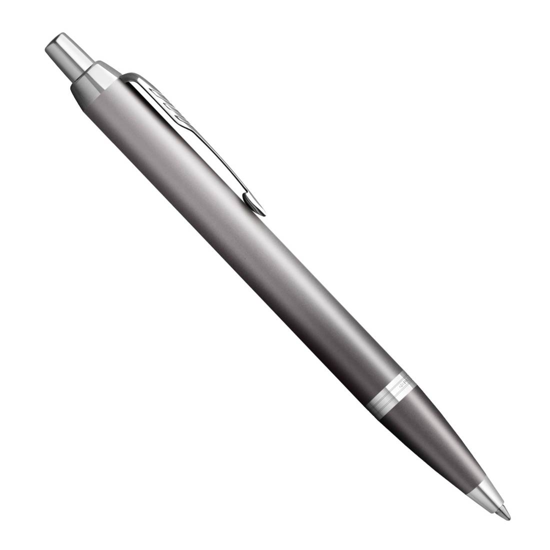 Penna Parker in acciaio inossidabile con finitura metallica satinata sfumata e completata con finiture cromate. Confezionata in elegante astuccio regalo. Fornita con refill colore blu.