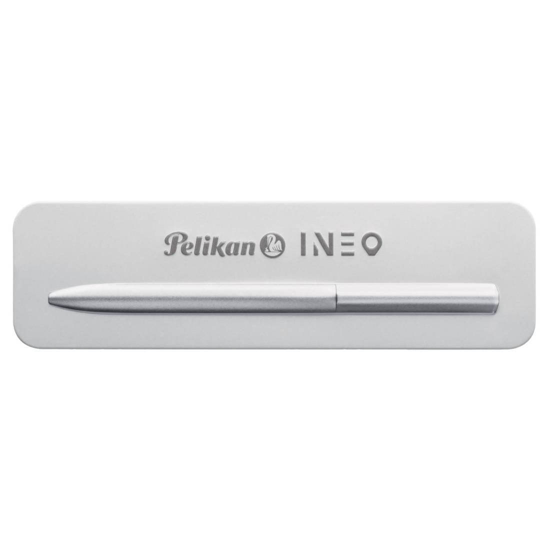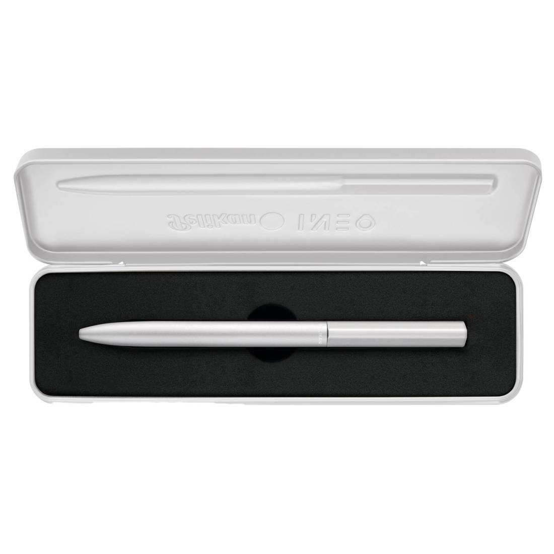 Penna a sfera in metallo sottile in stile purista e minimalista. L'elemento distintivo di questa penna a sfera è il suo design senza clip, la parte superiore a forma di goccia della penna funge anche da protezione al rotolamento. La penna INEO ha vinto il prestigioso riconoscimento Red Dot Design Award 2023 per il suo raffinato design. Fornita con refill 337 Pelikan colore blu, misura M. La penna viene fornita in un elegante astuccio in metallo.