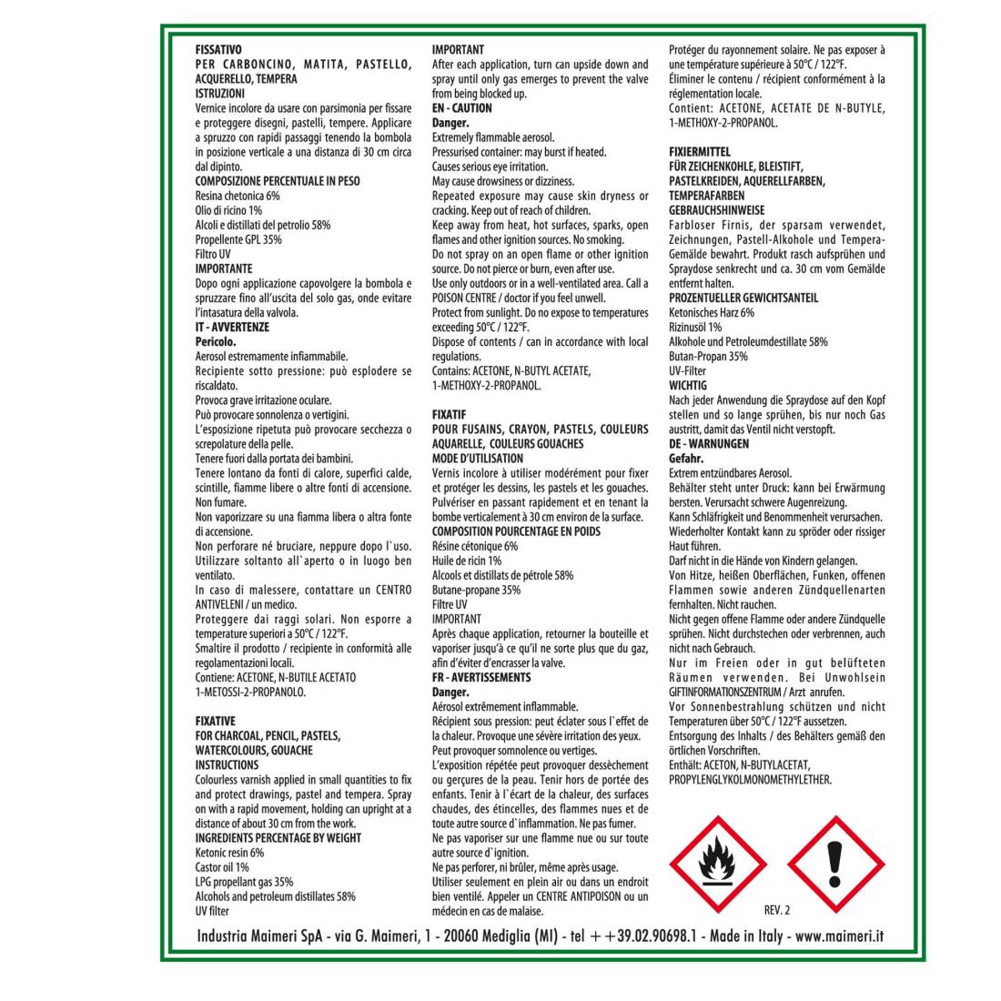 MAIMERIVernice fissativa incolore fissa e protegge disegni, pastelli e tempere. Usare con parsimonia.
